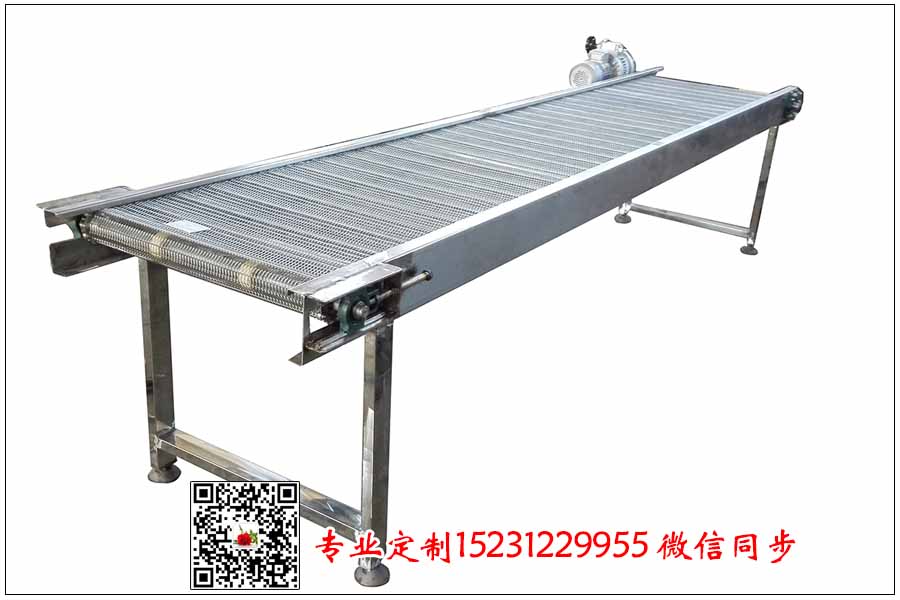 羊毛分揀線采用不銹鋼輸送帶來輸送,其結構形式可以采用鏈條式鋼絲編織型輸送網帶,該輸送網帶孔徑可調,絲徑可調,鏈條節距可調,訂購隨意簡單,以下是客戶訂購的鏈條式不銹鋼網帶的訂單數據,希望能給大家做個參考: 鏈條式不銹鋼輸送帶總寬為800毫米,長度為30米 鏈條節距為38.1毫米(滾珠到滾珠的距離) 鋼絲輸送網帶孔徑為10*15毫米,孔徑可以根據自己的需要定制不銹鋼網帶的絲徑為1.2毫米,支軸直徑為8毫米,因為輸送網帶相對較寬,因此支軸的選擇不能太細,否則會出現塌腰的情況,支軸之間的距離為15公分左右。