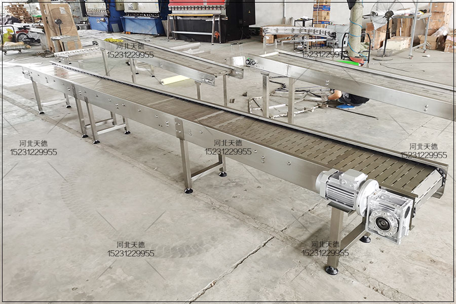鏈板輸送機歡迎來電定制河北天德雞胸肉油炸流水線鏈板輸送機:15231229955 網址:http://www.xqjbx.cn/