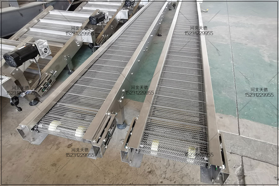 茅臺生產(chǎn)線網(wǎng)帶輸送機(jī)是采用循環(huán)往復(fù)式的傳動鏈條做為牽引帶電力能源,以鏈板輸送機(jī)為輸送的一種輸送機(jī)械設(shè)備。網(wǎng)帶輸送機(jī)主是由驅(qū)運(yùn)作能組織、牽此 鏈、呂 板、推動及調(diào)向鏈輪鏈條、聲卡機(jī)架等部分產(chǎn)生,擁有輸送才能大、好用范圍廣等特性。網(wǎng)帶輸送機(jī)除開黏度尤其大的原材料以外,某些固體原材料跟整 件物 均很有可能用網(wǎng)帶輸送機(jī)開展輸送,尤其是飲品領(lǐng)域之中用于輸送各種PET瓶利用的更加廣泛。 茅臺生產(chǎn)線網(wǎng)帶輸送機(jī)因其本身的構(gòu)造的尤其性,進(jìn)而提高了輸送媒介的抗壓強(qiáng)度及可利用性,無論是在總寬上或是在長度上面完畢無前提條件的跳軸。與此同時網(wǎng)帶 輸送機(jī)的隔板與檔板也都很有可能完畢固接銷自鎖互鎖,變成輸送媒介的總體構(gòu)件之一。網(wǎng)帶輸送機(jī)很有可能開展分成碳素鋼、不銹鋼板及輪胎防滑鏈板等,倘 若所需網(wǎng)帶輸送機(jī)需要來選擇不一樣的總寬、不一樣的外觀設(shè)計的鏈板輸送機(jī)來完成平面圖輸送、平面轉(zhuǎn)向、升職及著陸等很多的乞求。