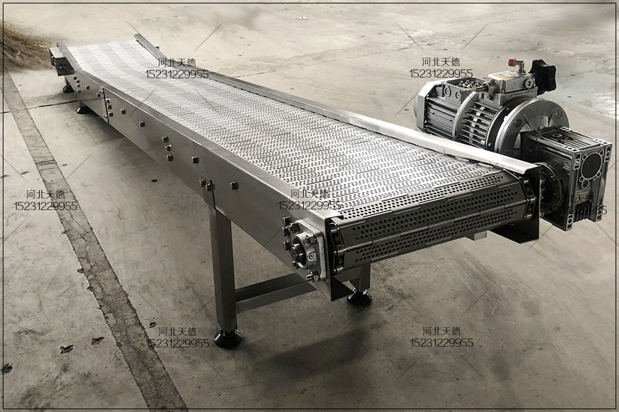 鏈板輸送機歡迎來電河北天德速凍蔬菜流水線鏈板輸送機:15231229955 網址:http://www.xqjbx.cn/