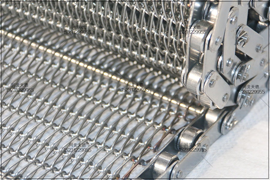 鏈條式金屬輸送帶 網帶式金屬輸送帶上的沖擊載荷主要與以下因素有關。即裝載點高度、材料質量和棱角形狀、托輥質量、輸送帶橫向彈性模量和托輥內襯彈性模量等。在裝載點使用緩沖懸掛托輥組,能降低金屬輸送帶的動載荷,降低帶式輸送機輸送帶的損壞概率。