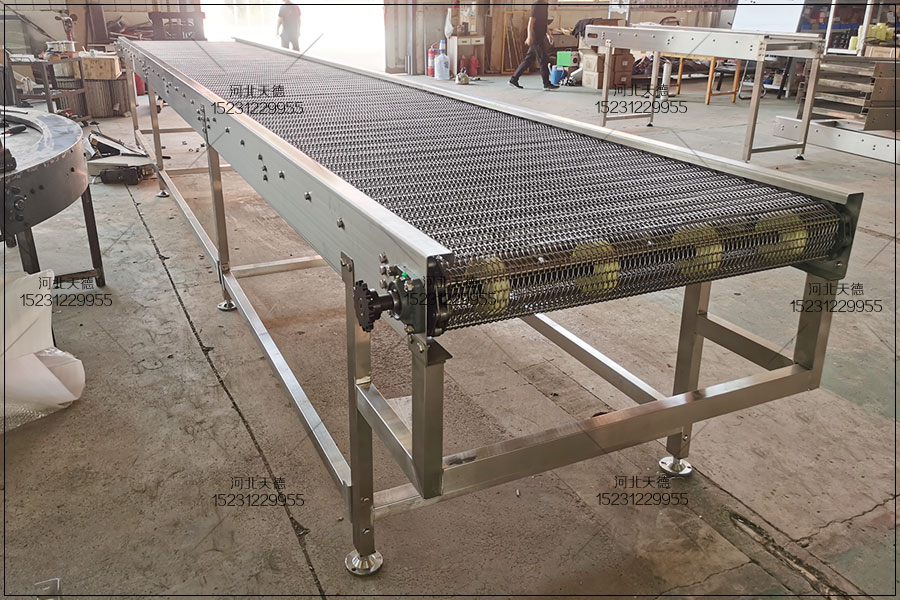 歡迎來電定制河北天德網帶式水果罐頭生產線不銹鋼鏈條輸送機:15231229955 網址:http://www.xqjbx.cn//