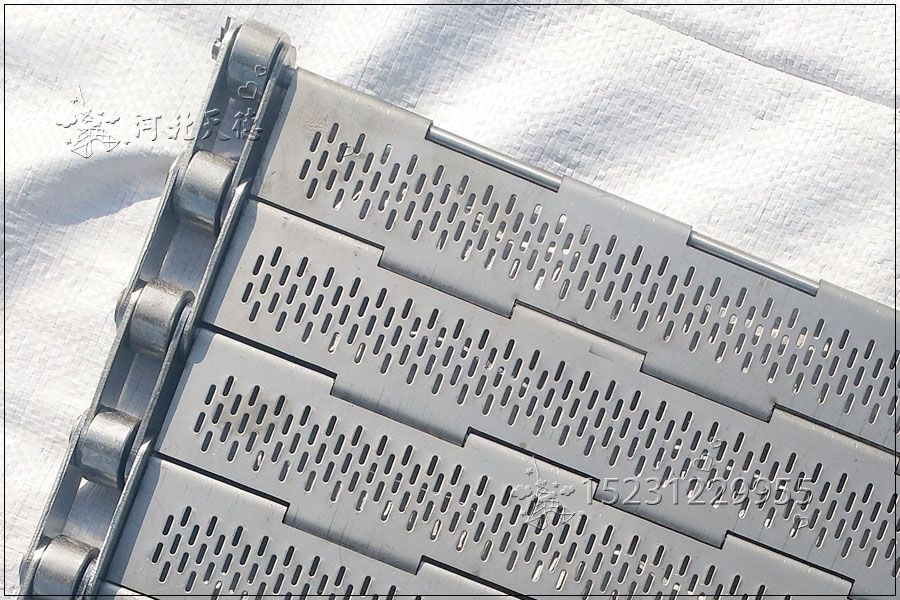 鋼板彎曲成合頁,使用支軸串在一起,輸送面呈一個平面