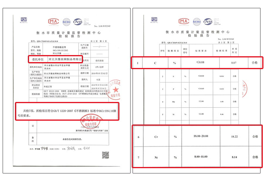 材質檢測報告:合格
