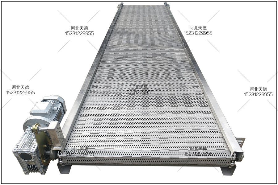 這臺鏈板輸送機是廣西的客戶定制的,這臺輸送機要求整機采用不銹鋼304材質(zhì),因為這臺不銹鋼輸送機要在水中長期的使用,如果采用碳鋼的材質(zhì)會生銹的,而且使用一段時間后就需要更換 新的,我們采用不銹鋼304材質(zhì)使用時間更加的長久。